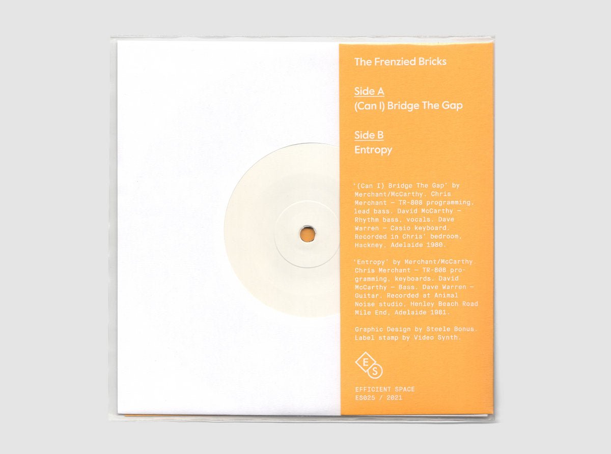 The 7” marks the non-band’s debut release, combining two should-be classics from the vault. ‘(Can I) Bridge The Gap’ apathetically tunnels with Neu! Order energy, dual bass and McCarthy’s laconic vocal delivery, while their only instrumental ‘Entropy’ calls in guitarist and unofficial Brick Dave Warren to send the TR-808 into the stratosphere. Unknown until now, this is down under synth-wave at it’s finest.