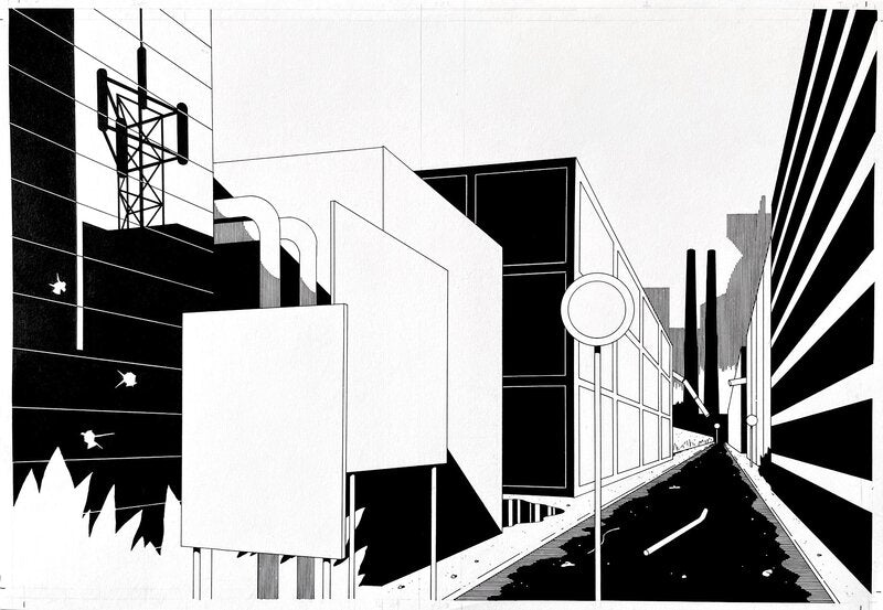 L’une et l’autre cités ont été dessinées par Jérôme Dubois, toutes deux selon le même découpage, les mêmes cadrages, la même fatale temporalité. Mais là où Citéville grouille de stupides turpitudes, s’alimente de ses déchets et assure la reproduction des monstres humains qui l’ont bâtie, Citéruine dresse ses abattis, laisse calmement miroiter son squelette sous les durs néons qui lui restent. S’étant débarrassée de ses occupants ou ayant été délaissée par eux, qu’importe, ayant abandonné tout espoir, Citéruine a quitté son pauvre statut de décor. Elle est désormais paysage, et paysage animé: ses contours et ses lieux reprennent le flambeau de la narration, rejouent la comédie urbaine pour eux seuls, et tournent dans la nuit, dévorés par le feu.