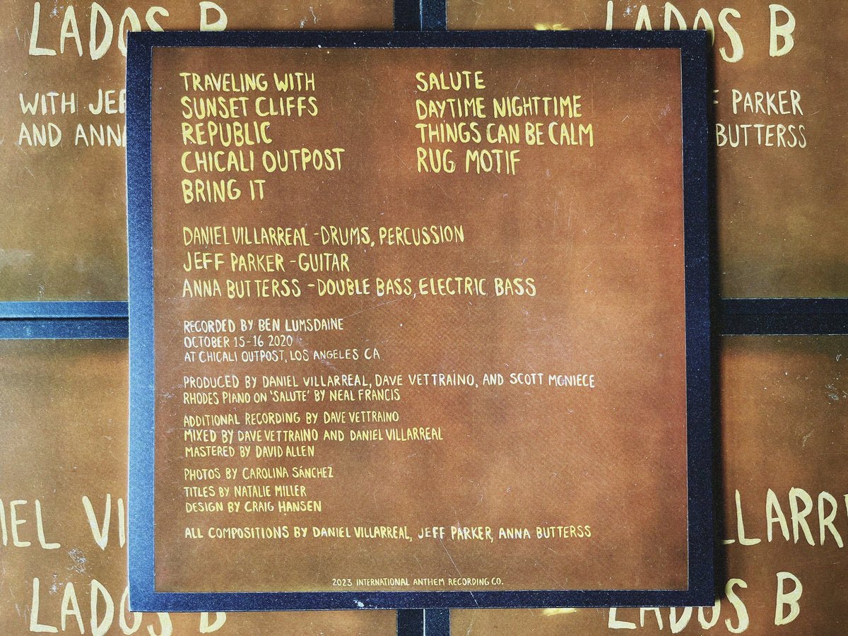 Lados B is a deep dive into the high-level spontaneous music made by Villarreal, Parker, and Butterss across those two days in 2020. Villarreal is heard leading the group through various rhythmic modes and structures for improvisation – flow as informed by the Latin funk of Fania Records as it is by the otherworldly humanity trance of Brain Records – while Parker and Butterss draw on their extensive experience playing free together (as heard on Parker's recently-released Mondays at the Enfield Tennis Academy, and the LA side of Makaya McCraven's 2018 LP Universal Beings) to build harmonic buoys for their spontaneous melodicism. The result is a beautifully vivid illustration of context, creativity, and collective composition from a particularly rich moment in history.