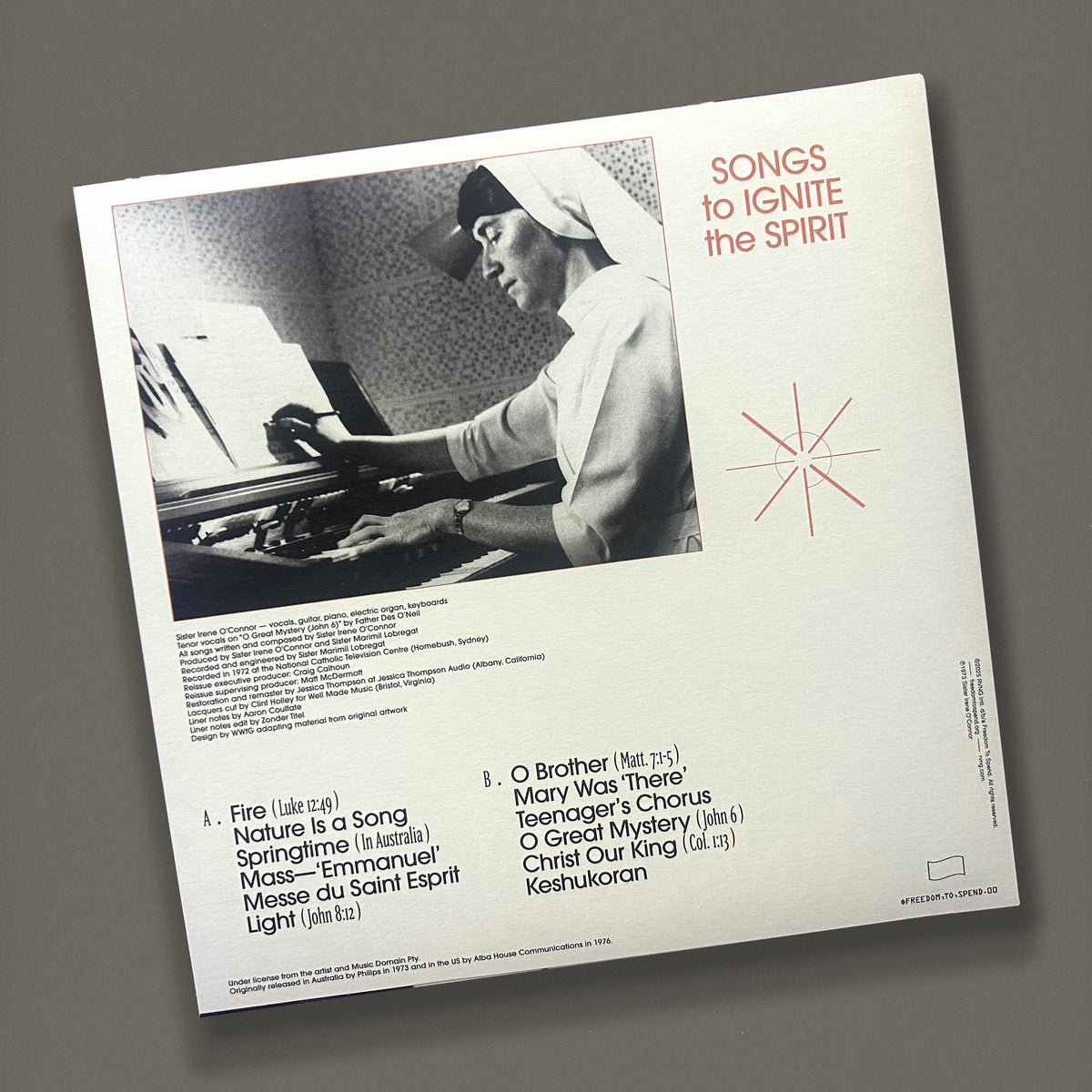 Fire of God’s Love is the legendary 1973 album by Australian nun Sister Irene O’Connor—a sincere, soulful, and unconsciously psychedelic song sequence devoted to self-reflection and awakening the spirit within. A collection of original folk spirituals written by and channelled through O’Connor with guitar, electric organ, drum machine and her angelic voice, the album was recorded and mixed in an astonishingly futuristic fashion by fellow nun and recording engineer Sister Marimil Lobregat. This edition from Freedom To Spend is the first authorized reissue of this holy grail since 1976; the album restored and remastered with love from the best available sources by Jessica Thompson.