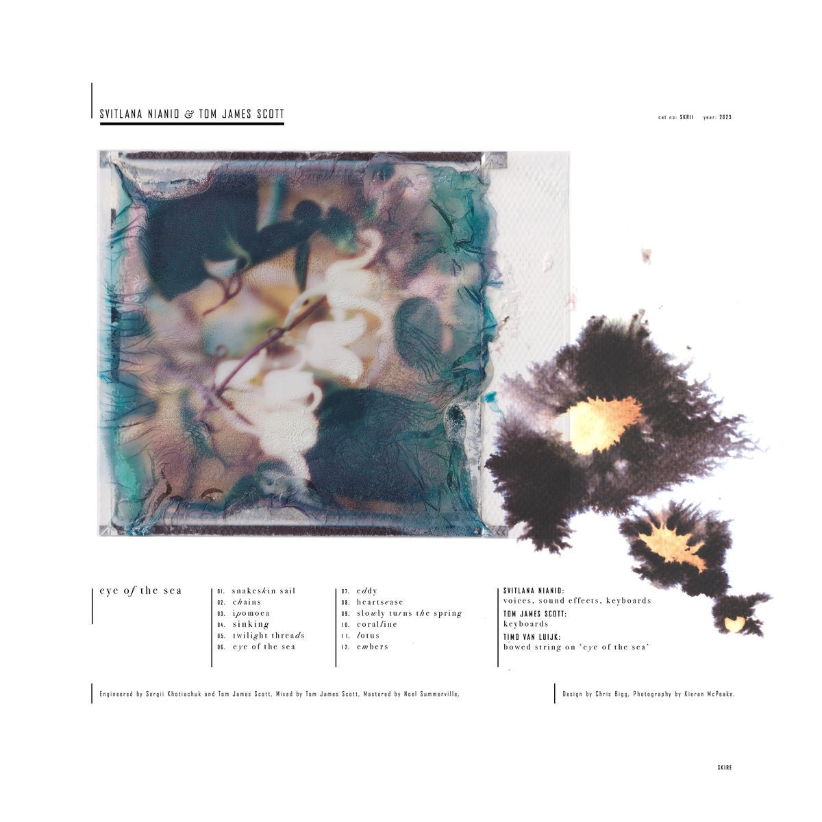 Recorded in correspondence throughout a calamitous and uncertain 2020, “Eye of the Sea" is a collaborative record made by Tom James Scott of the United Kingdom and Svitlana Nianio of Ukraine. Active since the late 1980s, Nianio has released a treasure trove of diverse and beguiling music under her own name, as a member of the legendary Ukrainian experimental unit Cukor Bila Smerť, and in collaboration with the late musician and instrument maker Oleksandr Yurchenko. For his part, Scott has steadily published solo recordings since the mid aughts on labels such as Bo’Weavil, Students of Decay, and Where to Now?, and worked often in collaboration with kindred spirits like Andrew Chalk and Timo Van Lujik.