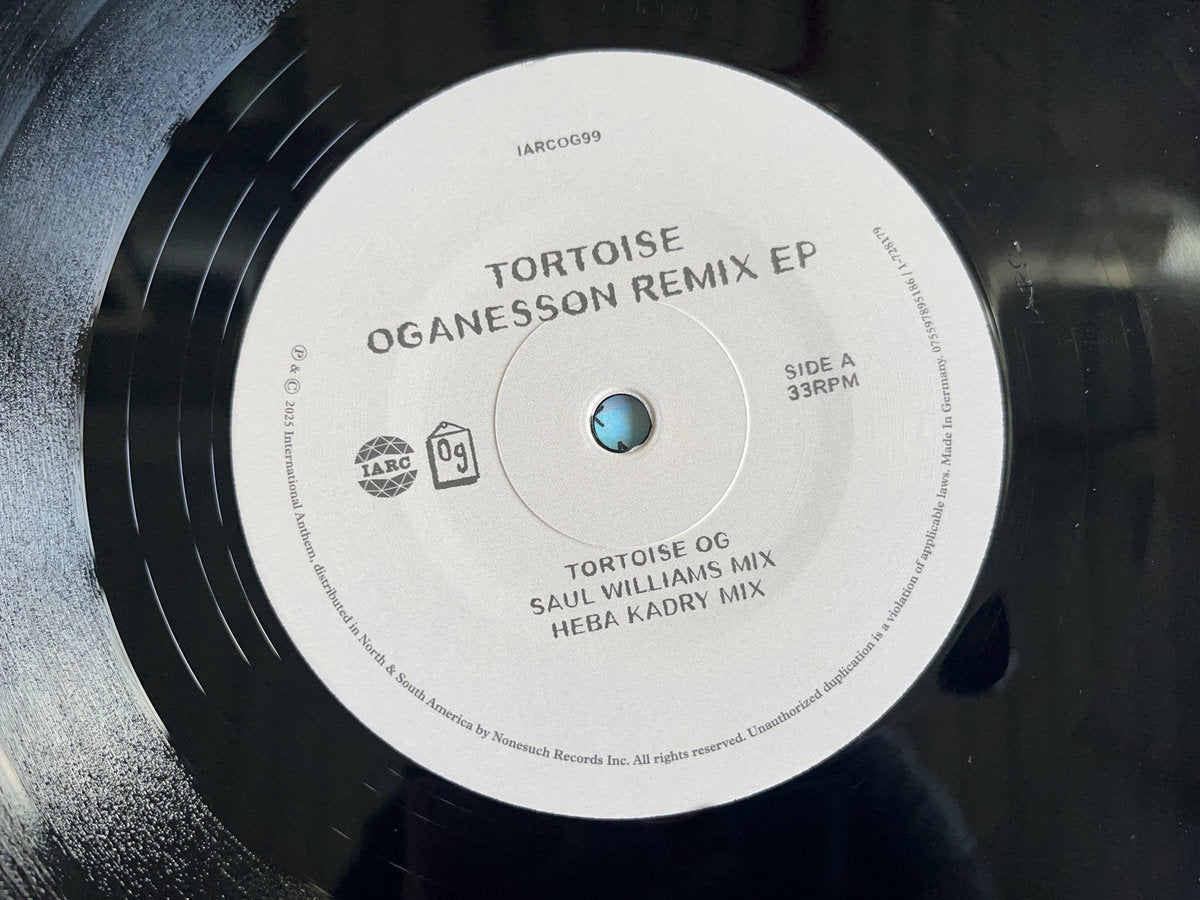 The Oganesson Remixes EP follows the March 2025 release of the “Oganesson” digital single, which was the first new music released by Tortoise since 2016. The EP includes the original version of “Oganesson” alongside five new remixes of the track created by collaborators and friends of the band, including poet and activist Saul Williams, prolific mastering engineer Heba Kadry, Black Keys drummer Patrick Carney, indie music icons Broken Social Scene, and International Anthem labelmate Makaya McCraven. The Oganesson Remixes EP comes ahead of a new album by Tortoise, which will be released this fall via International Anthem and Nonesuch Records.