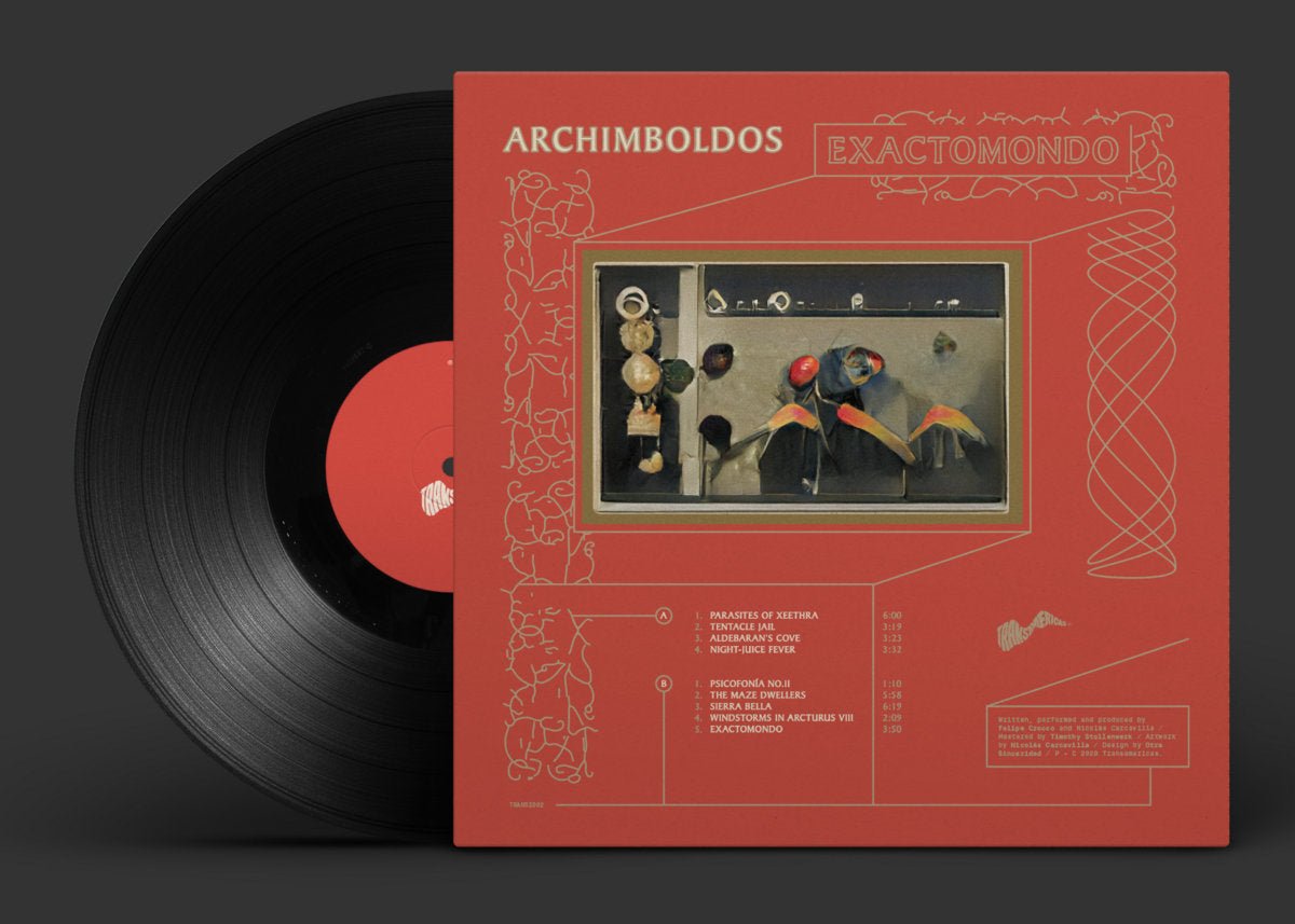 In 2017, producer and musician Nicolás Carcavilla, aka Embassador Dulgoon, teamed up with Felipe Crocco M.D., synth player and soundscapist in Martes Muerto, to bear the duo Archimboldos. Exactomondo is the duo’s second release, presented by newly founded Chilean label Transamericas.