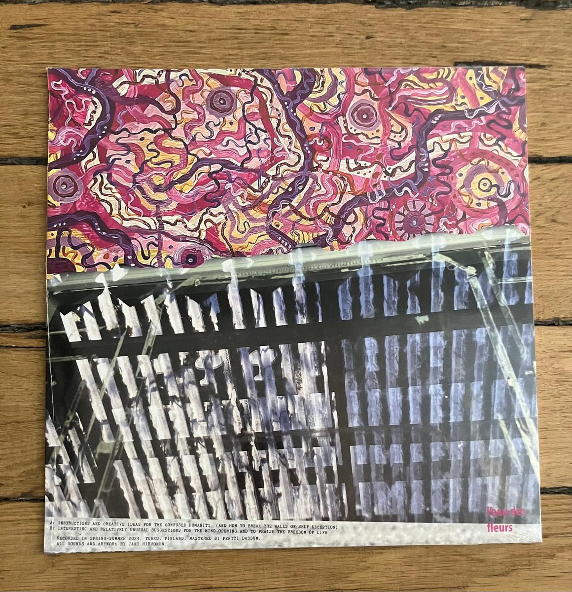 For these "Unusual suggestions", Jani, who did also this marvelous artwork, played himself all the instruments : percussions, kalimba, violin, radio, balalaïka, flute, kantele, electronic effects... These uncommon suggestions seemed endless. You can listen here and there some remains of avant-folk shapes but actually this LP is totally idiosyncratic in his form as the listener would experiment it. Each side is a multi-coloured mosaïc with some collage effects and variety of sounds and energies that make me totally impressed. This is what Jani sent me on June 2025 to introduce his record :