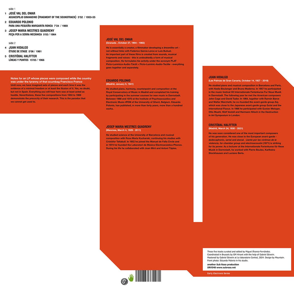 This LP reveals the extraordinary diversity of research - almost all hidden - by Spanish musicians in the '50s and '60s. Those pieces were composed while the country was under the tyranny of Francisco Franco. It is truly the ultimate grail, developed by musicologist Miguel Álvarez-Fernández, he is its curator, editor and commentator. This undoubtedly marks a major step in the approach and understanding of this music which had to fight to exist before the death of Franco in 1975.