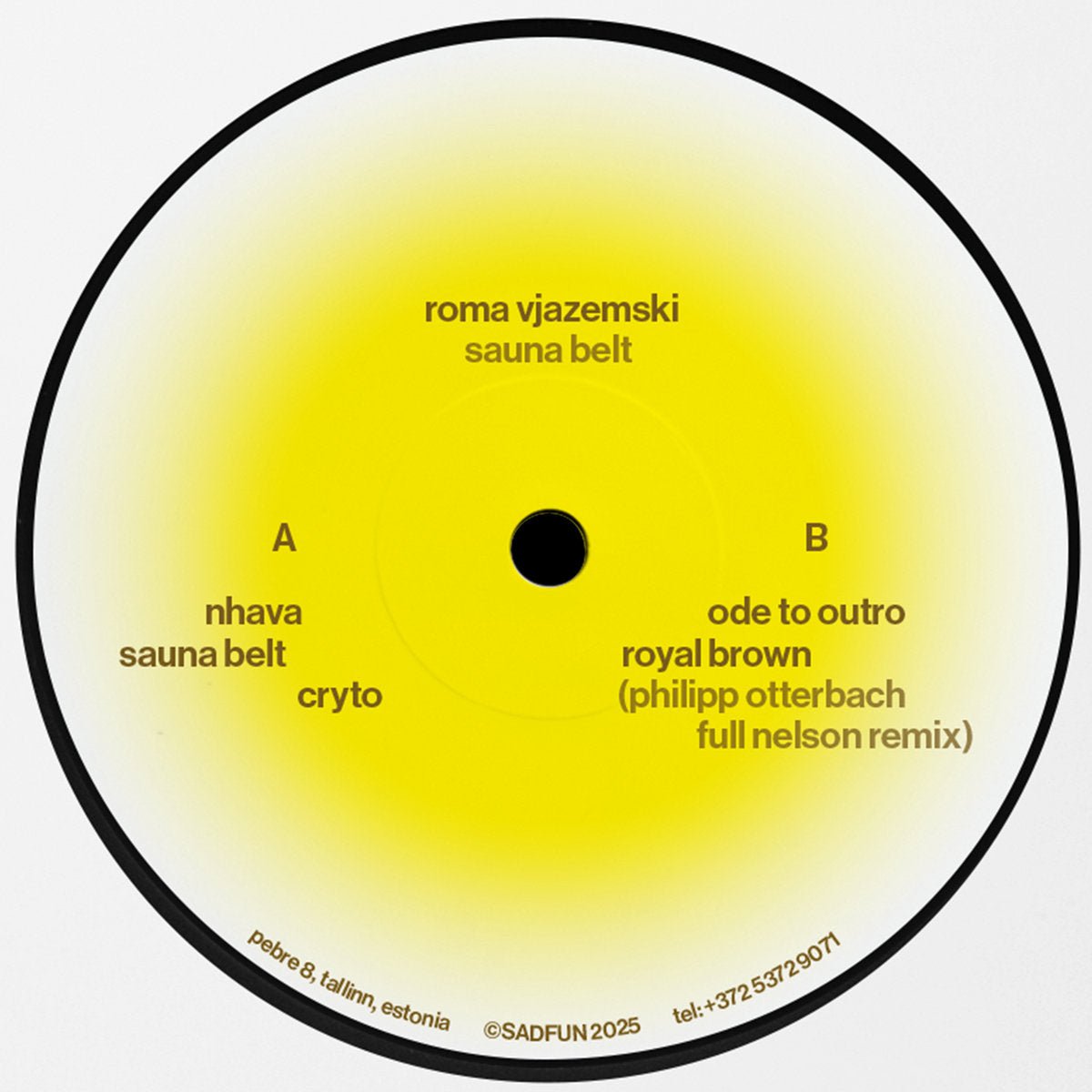 Estonian meteoric label Sad Fun lets loose “Sauna Belt” 12—inch by Roma Vjazemski. Vjazemski brings along four tracks from his recent limited cassette “Handlebar” for Berceuse Heroique & adds an extraterritorial remix by Philipp Otterbach. Loose oddball electronica by the Tallinn based astronomy enthusiast.